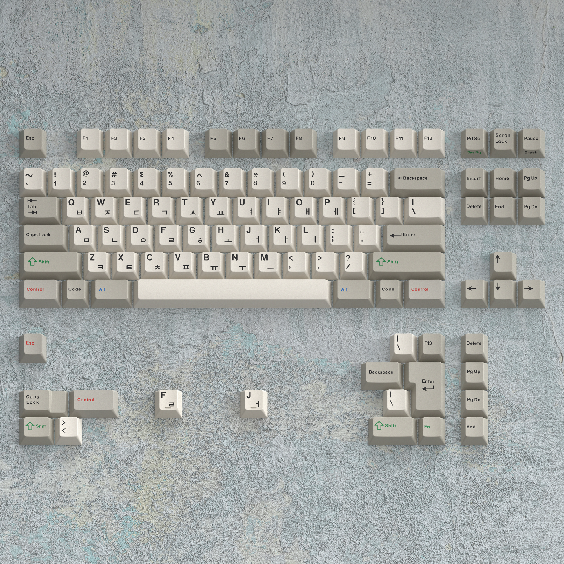 Keykobo Jindo is an ABS beige + accent set that utilises a new Hangul font from a front designer in Korea.